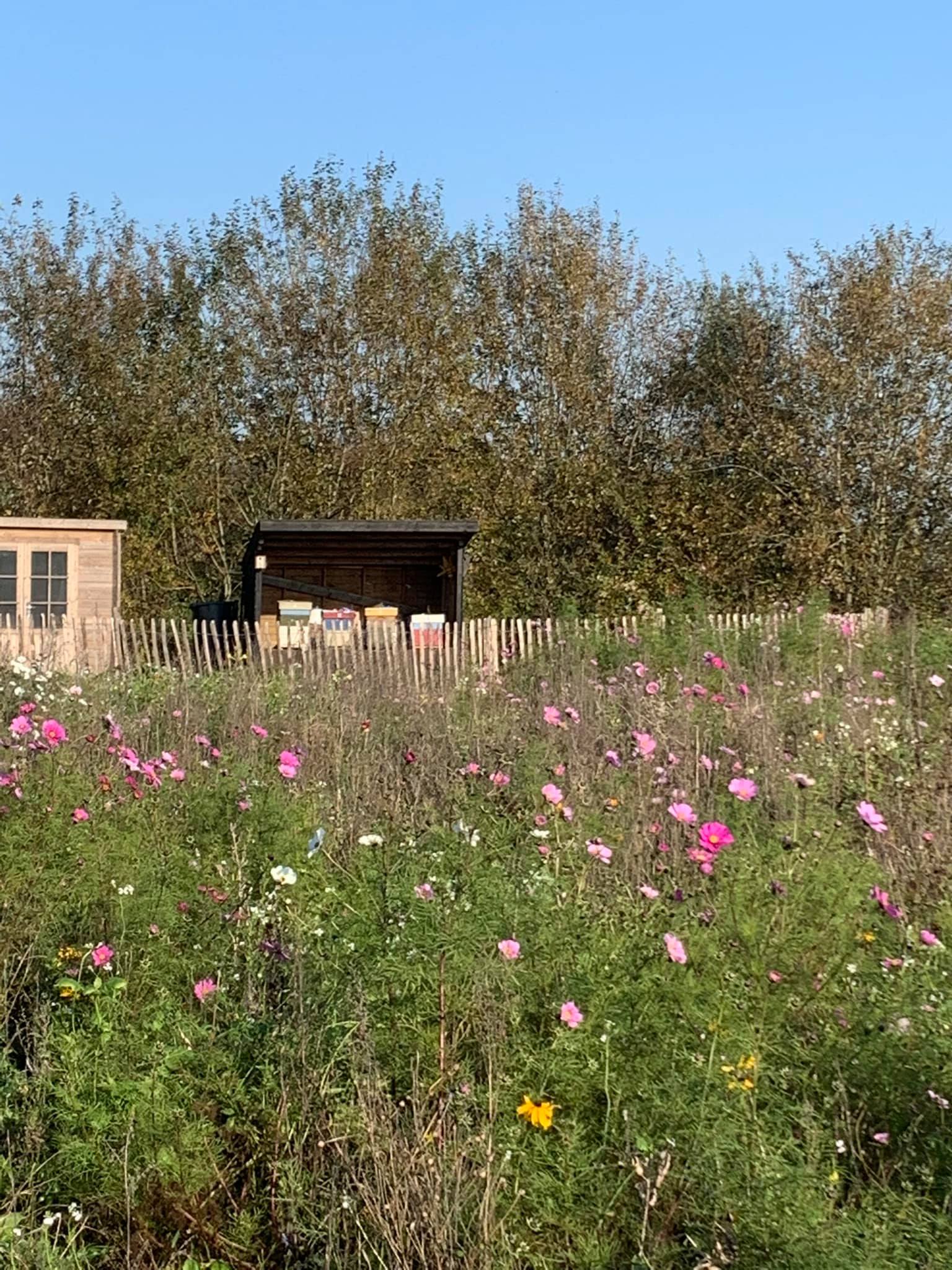 Bij de heuvel is onze bijenweide, iets waar we erg trots op zijn. De bijenstal met de bijenkasten staat aan de heuvelzijde. In de zomer herken je de plek door de prachtige bloemenweide die volop in bloei staat.